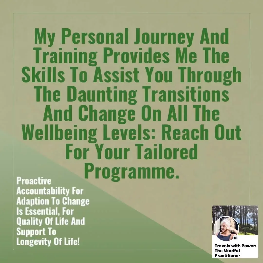 These skills and training also allow me to be a "Wellbeing Coach." My coaching work has assisted all age brackets. I have also Coached intensively the younger generation to find their way when lost, to understand when poor choices are being made leading to poor outcomes.